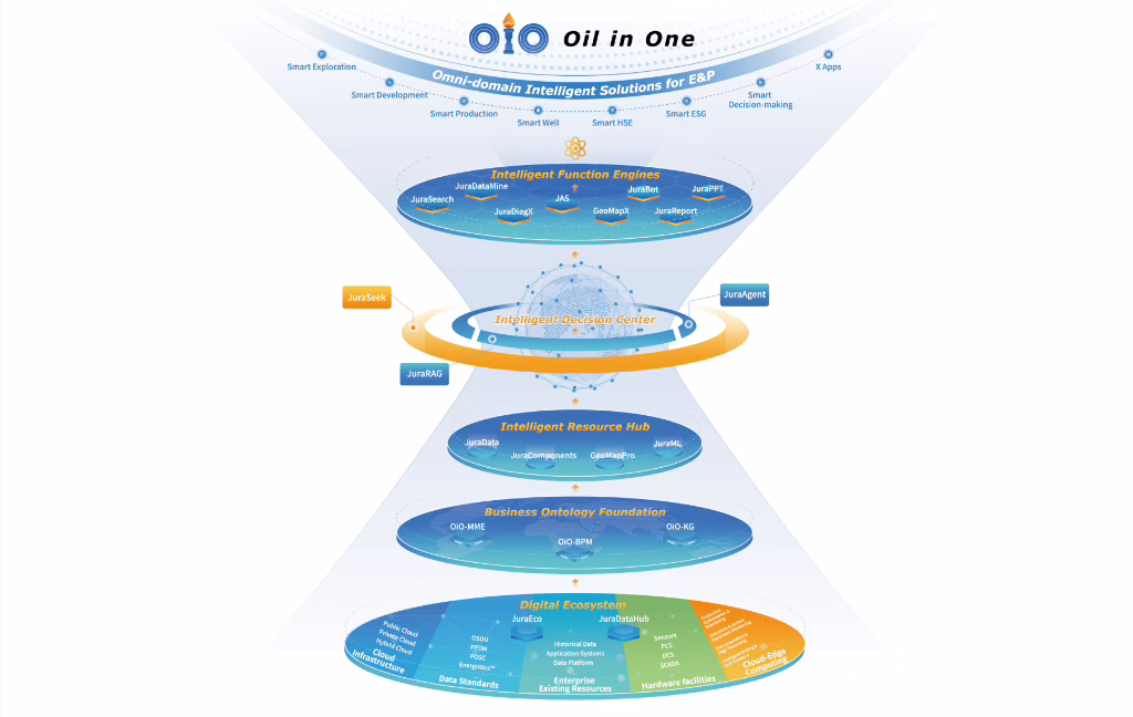 The OiO Integrated Exploration & Development Intelligent Platform is the cornerstone of oilfield digital transformation. Drawing on Jurassic’s 30 years of digital expertise, it seamlessly connects data, models, processes, and intelligence. OiO equips oil companies with three core capabilities: governance, AI execution, and AI insights, enabling the shift from an”Iron Triangle” to a “Golden Triangle” and fostering an intelligent, borderless oil & gas ecosystem.